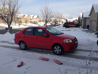 So the day before Thanksgiving Day we headed out in search for a new car (Thanks Gammie for watching the kids so we could go!!) Luckily Sally did get us a 1,000 dollars trade in. Although it took us all day (we both hate car shopping!) We found this nice little car: 2010 Chevy Aveo with 20,000 miles on it. We really lucked out. This car was much newer then we thought we could afford and has much lower gas mileage. It is a small, simple car, but it has been great so far and has gotten 30 miles per gallon which was one of our biggest goals! We really are happy with out new selection, however one problem....it needs a name.........SO IF ANYONE HAS ANY SUGGESTIONS PLEASE COMMENT BELOW :)