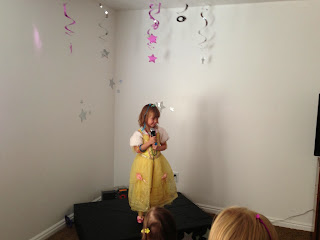 Dave built a stage for me the day before and I covered it with black. It turned out so so good!!! We also came up with a play list and had a microphone so the girls could sing there little hearts out!